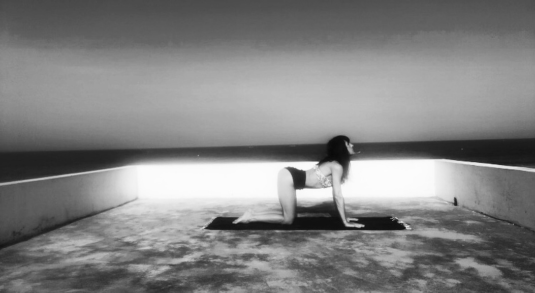 Inspirer en poussant le bassin vers le haut pour étirer votre colonne vertébrale, votre cou et votre tête vers le haut.